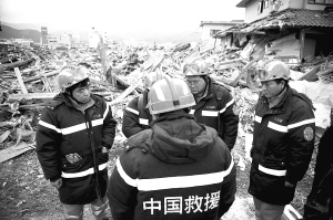 | → 中国国际救援队队员在日本岩手县大船渡市继续进行搜救工作。新华社发 |