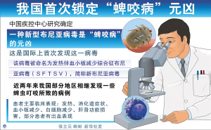 近两年,我国部分地区陆续报告了以发热、胃肠道症状、血小板减少和白细胞减少为主要临床表现的感染性病例,少数患者因多器官衰竭死亡的情况。针对这一可能的新发传染病,在卫生部的组织下,中国疾病预防控制中心开展了探索研究工作。2009年,中国疾病预防控制中心通过国家“海外高层次人才引进计划”(“千人计划”)引进的旅美学者、得克萨斯大学于学杰教授的研究小组经过多方探索,首先发现了一种新型布尼亚病毒。2010年5月,中国疾控中心将该类病例定义为“发热伴血小板减少综合征”,并开展了病例的主动发现、搜索等监测工作。