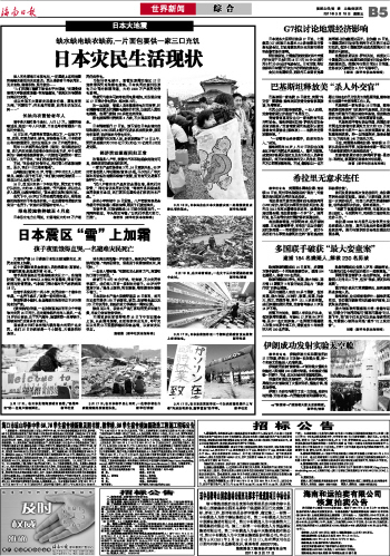 海南日报 世界新闻 013 2011-03-181 2011年03月18日 星期五