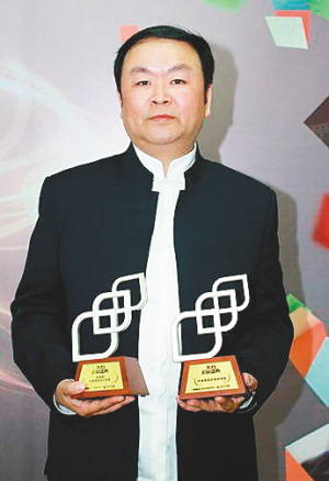 | 高希希手拿两尊奖杯 |