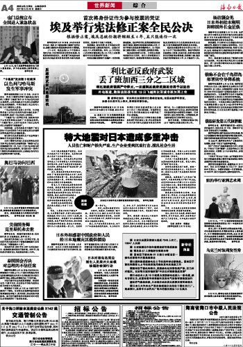 海南日报 世界新闻 综 合 004 2011-03-201 2011年03月20日 星期日