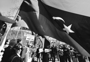 | 卡扎菲说:“现在有必要打开军火库,让所有群众拿起各种武器保卫利比亚的独立、团结和荣誉。” |
