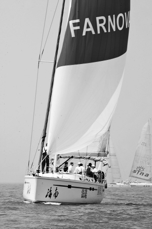 | 3月20日上午,2011年环海南岛国际大帆船赛启航仪式在海口市秀英码头举行。图为参赛船只在海口海域进行场地赛的情景。