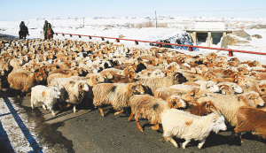 3月21日,新疆阿勒泰哈萨克族牧民赶着羊群行进在转往春牧场途中。 近日,阿勒泰地区哈萨克族牧民开始了今年第一次牲畜大转场,百万头(只)牲畜将陆续转入春牧场。 新华社发