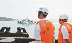 为保障2011年环海南岛国际大帆船赛顺利举行,3月20日至21日,海南海事局巡查执法支队、八所海事局和三亚海事局组成联合巡航编队,对东方至三亚赛段的比赛线路以及三亚场地赛的比赛海域开展了联合巡航。 图为巡航编队在八所至三亚的航路上巡航。 本报记者 宋国强 通讯员 谌强 摄