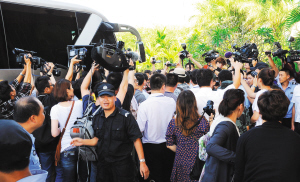 尽管两位新人通过自己的微博等渠道发表声明,婉拒媒体报道自己的婚事。但台湾知名艺人大S与大陆商人汪小菲结婚之事,还是引起了各地尤其是港台媒体的广泛关注。昨天晚上,记者在康莱德酒店门口处看到,由于受到酒店保安的拒绝,近30名各地媒体记者蹲守在酒店门口,等待可能“突围”的机会。