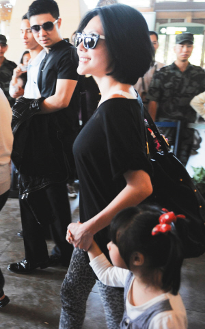| →参加姐姐婚礼的小S携女儿抵达三亚。