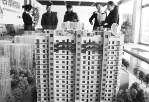 | 3月22日,山东省临沂市郯城县市民在一商品房楼盘选购房子。