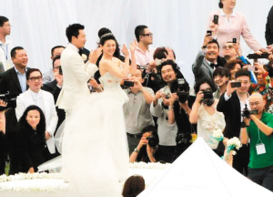 出于新人的意愿,所有前来采访的媒体记者都被挡在酒店大门外,他们在这里蹲守了几十个小时。酒店方出于关爱,特地设了临时休息的帐篷,并提供茶水及餐饮。据悉,婚礼结束后,来宾们将于明天下午飞离三亚。