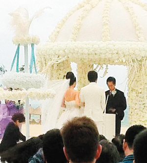 本报三亚3月22日电 (记者吴钟斌)今天下午,在众多名人的见证下,大S与汪小菲在海棠湾康莱德酒店的“沙滩殿堂”上举行了隆重的结婚典礼。这是三亚婚庆界迎来的最为隆重的结婚盛典。