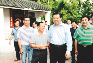 | 3月19日,中共中央政治局常委、全国政协主席贾庆林在三亚槟榔河文明生态村考察。 本报记者 宋国强 摄 |