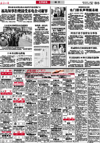 海南日报 世界新闻 013 2011-03-231 2011年03月23日 星期三