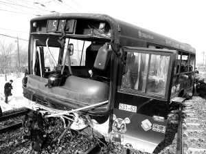 记者了解到,发生事故的531路公交车自南往北行驶,失去控制后在环卫南路三站处直接冲上人行道,撞毁铁路防护栏,一根木头电线杆也被撞断,公交车冲过宽约20米的林带后横在铁轨上,很快遭遇7553次旅客列车相撞。