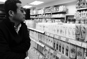 | 3月24日拍摄的上海某超市日化产品货架,外资企业产品占据显著位置。