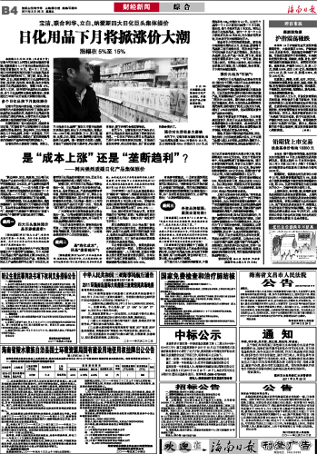 日化用品下月将掀涨价大潮