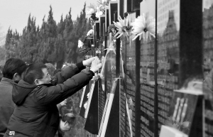 3月26日,亲人在祭奠逝者。 当日,一种界于海葬与骨灰葬之间的凸显人性关怀的新葬式———“微量骨灰葬”,在上海滨海古园举行的“2011年上海公祭海葬典礼”上推出。“微量骨灰葬”,指的是在逝者骨灰撒海的当时保留约二百分之一的骨灰,由滨海古园将其安葬于园内的“海葬纪念苑”。 新华社发 (张金桥 摄)