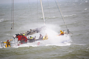 南海救助局先进的专业救助船“南海救201”承担本届大赛的全程护航救助工作。3月23日上午,“南海救201”船在起锚过程中,锚机轴突然出现故障,水中的铁锚无法起吊,该船无法开机航行。10时50分,正当“南海救201”全体船员在紧张忙碌维修锚机时,船长黄文庆又接到了参赛帆船“海南号”的求助:该帆船失控,正撞向岸边的防浪堤,情况十分危急。船长黄文庆立即派出3名救助人员驾驶小艇前往救助“海南号”。十分钟后,脱锚的“海南号”被成功控制。