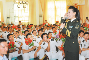 | 歌唱家谭晶为官兵献唱。 高宏伟 摄 |
