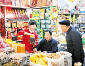 | ← 检测出极微量人工放射性核素碘,黑龙江省东宁县平静如常。3月28日上午,消费者在黑龙江东宁县一市场内购买山特产品。