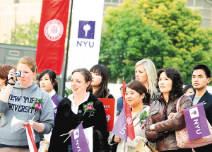 建国际一流大学 上海纽约大学奠基陆家嘴 3月28日,由教育部批准筹建的上海纽约大学在浦东陆家嘴奠基。上海纽约大学由中国华东师范大学和美国纽约大学合作,是国内第一所中美合作的国际化大学,具有独立法人资格。定位为国际化一流研究型大学的上海纽约大学,是我国中长期教育改革和发展规划纲要出台后,兴办的第一所中外合作大学。据介绍,上海纽约大学将从2013年起面向全球招收优秀学生,中国学生的比例将至少占到五成;并将面向全球招聘一流师资,同时来自美国纽约大学的教师将占到三分之一以上。 新华社发