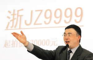 所得款项将用于公益事业 3月29日,拍卖师在浙江省台州市招投标中心拍卖大厅主持拍卖车牌号。 当日,一名车主以60.5万元拍得“浙JZ9999”机动车牌号。此次拍卖所得款项将用于建立交通事故社会援助基金以及建设交通安全设施等。 新华社发