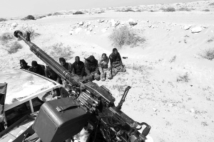 | ←3月28日,在利比亚领导人卡扎菲的家乡苏尔特,利比亚反政府武装分子在做礼拜。