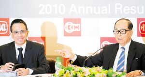 3月29日,李嘉诚在业绩发布会上。当日,香港首富李嘉诚旗下长和系发布2010年度业绩,其中和黄3G业务在多年亏损后,于2010年度首次取得全年正数EBIT(未扣除利息支出与其他融资成本、税项及非控股权益前盈利)。 新华社记者 吕小炜摄