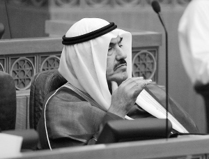 3月31日,为避免外交、石油和经济大臣接受议会质询,以首相纳赛尔为首的科威特内阁向埃米尔(国家元首)艾哈迈德·萨巴赫递交辞呈。埃米尔将决定是否任命首相纳赛尔重新组建新内阁。图为纳赛尔出席科威特国民议会会议的资料照片。 新华社发