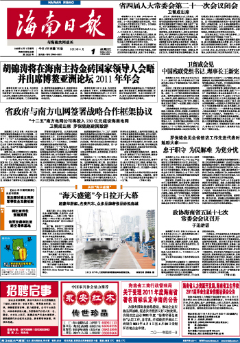海南日报 首版 001 2011-04-011 2011年04月01日 星期五