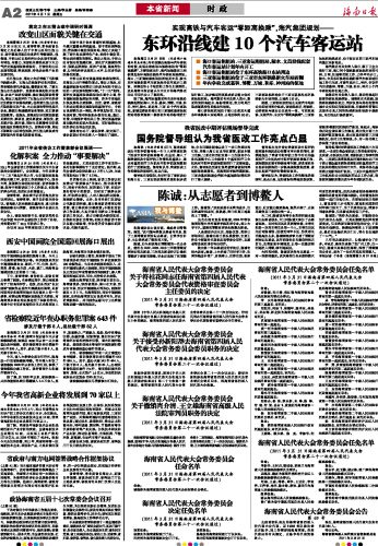 海南日报 本省新闻 002 2011-04-011 2011年04月01日 星期五