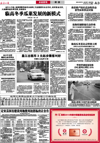 海南日报 本省新闻 003 2011-04-011 2011年04月01日 星期五