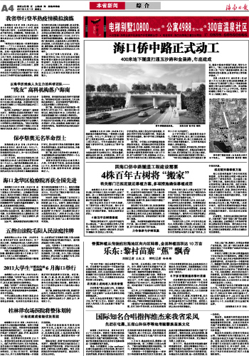 海南日报 本省新闻 004 2011-04-011 2011年04月01日 星期五