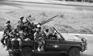 | 4月1日,支持瓦塔拉的武装人员在阿比让街头驾车前行。新华社/法新 |