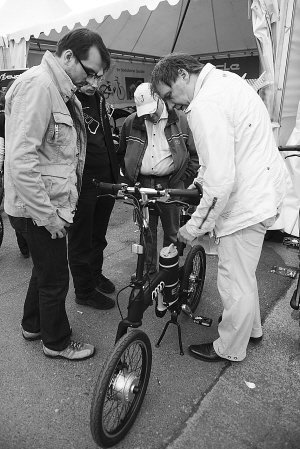 →4月2日,市民(左)在奥地利维也纳市政厅广场了解商家展示的电动自行车。 据介绍,维也纳市鼓励市民使用电动自行车,购买新的电动车或把普通自行车改造成电动车,市政府将给予总价30%、最多300欧元的补贴。2010年维也纳市共为近2700辆新购或改造电动车提供了补贴。 新华社发