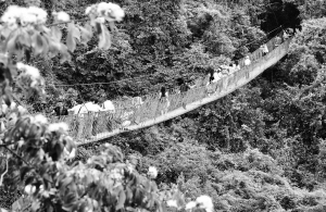 | 4月5日,游客在三亚亚龙湾热带天堂森林公园穿越吊桥观赏森林美景。因“三月三”、“海天盛筵”等活动吸引,三亚连日来迎来客流小高峰。