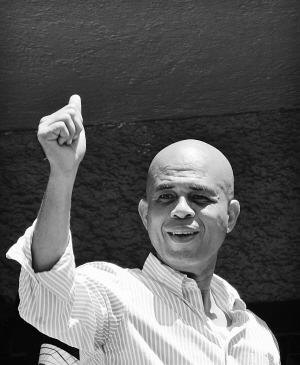 这张3月20日拍摄的资料照片显示,在海地首都太子港,海地总统候选人米歇尔·马尔泰利在结束投票后向支持者挥手致意。 海地临时选举委员会当日公布总统选举第二轮投票初步结果,海地歌手米歇尔·马尔泰利得票率为67.57%,而其竞争对手、前总统夫人米朗德·马尼加的得票率为31.74%,马尔泰利以绝对优势战胜对手,当选新一届海地总统。 新华社/路透