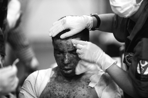 4月5日,从利比亚城市米苏拉塔和班加西搭载利比亚伤员的土耳其船只抵达土耳其伊兹密尔省切什梅港口。这艘土耳其船只共搭载470人,其中包括321名利比亚伤员,他们将在土耳其接受治疗。 图为4月4日在班加西被送上这艘名为“安卡拉”的船只前往土耳其切什梅港口的利比亚伤员接受治疗。 新华社/阿纳多卢通讯社