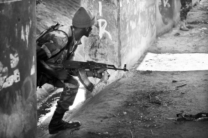 | 四月四日,在科特迪瓦经济首都阿比让,武装人员参加战斗。 新华社/路透 |