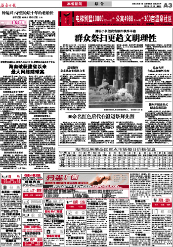 海南日报 本省新闻 003 2011-04-061 2011年04月06日 星期三