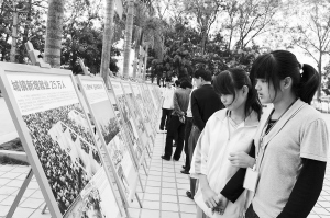 | 6日下午,《黄金五年———海南省经济和社会发展“十一五”成就展巡展》在澄迈中学开展。 本报记者 古月 摄 |