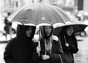 4月7日,在韩国首尔,人们撑着雨伞前行。 韩国7日开始普遍降雨,不少民众担心辐射侵害。对此韩国环境部紧急要求各地方政府和自来水公司对净水设施进行密封,防止雨水流入。同时,要求各地水库维持最高水位,检验自来水生产设施。根据监测结果,截至目前,尚未在自来水中检测出来自日本的放射性物质。 新华社/路透