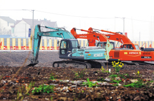 4月7日,上海迪士尼乐园项目工地,挖掘机静待开工。 近日,据上海市参与迪士尼项目的有关部门证实,上海迪士尼乐园项目将于4月8日开工。 新华社记者任珑摄