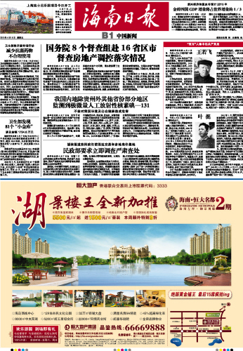 海南日报报业集团旗下媒体: 海南日报 | 南国都市报 | 南海网 | 南岛晚报 | 证券导报 加入收藏 | 设为首页