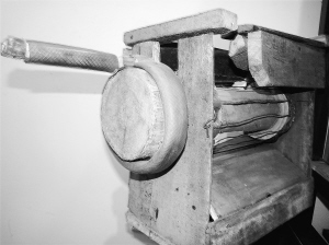 | 周光尚当年制造的手摇花生脱粒机 |