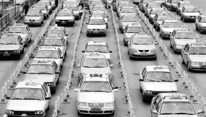 4月10日,众多出租车在大连火车站排队等候客人。 大连市将于4月26日举行调整出租车计价方式听证会。据介绍,此次听证会将重点讨论出租车运价由目前单一计费方式调整为时距并计收费方式,即出租车在时速12公里以下时,除距离计费外,同时开始计时收费。同时,听证的方案还包括增加空载返程费,调整油价联运机制起征点等。 新华社发(刘德斌 摄)