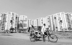 ⑤一名三轮车夫从印度加尔各答郊区的新建住宅旁经过(2010年12月29日摄)。