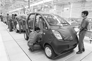 ③工人们在印度古吉拉特邦一座汽车工厂的生产线上组装“Tata Nato”汽车(2010年6月2日摄)。