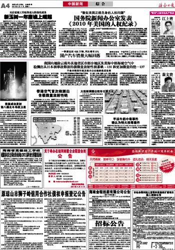 海南日报 中国新闻 004 2011-04-111 2011年04月11日 星期一
