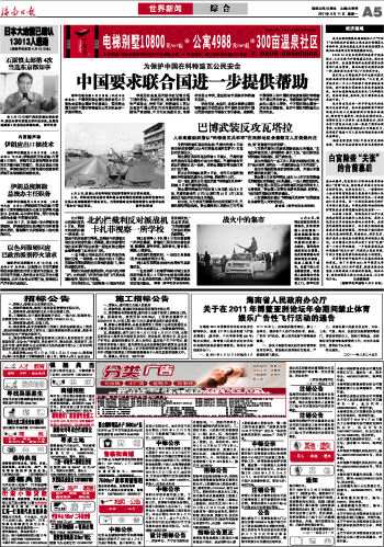 海南日报 世界新闻 005 2011-04-111 2011年04月11日 星期一