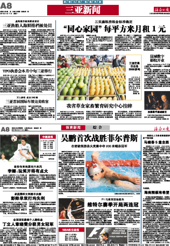 海南日报 三亚新闻/体育新闻 008 2011-04-111 2011年04月11日 星期一